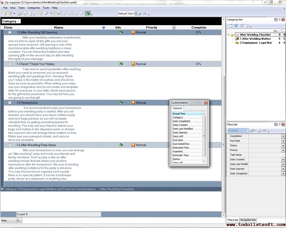 Wedding Planning Checklist is a 'to do list' for you to avoid wedding fuss. Use this