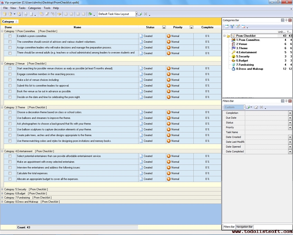 Party Planning Checklist is a 'to do list' for you to make sure that you take into account all details concerning your future party. Use this Party Planning template as a checklist to organize everything and be able to entirely enjoy the party.
