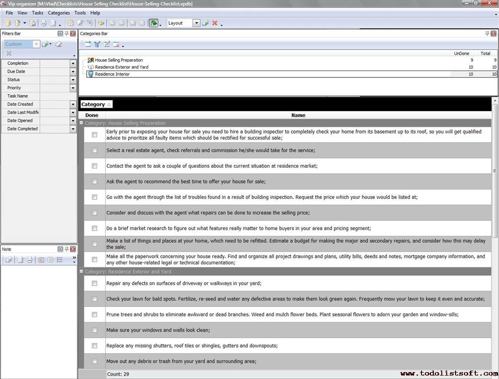 This House Selling Checklist is created for those who wish to sell their houses, so it explains what you need to do in order of preparing your house for this effort. It explains how to work with your residence’s exterior and interior, and how you will need to approach real estate agents.