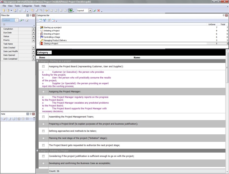 This Prince2 Project Checklist is created to help people in applying this famous methodology used by UK government (as the project management standard for public projects). With a help of this checklist you can learn the main processes and activities included into Prince2.