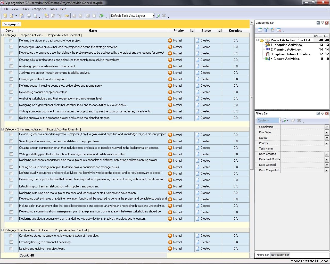 Project Activities Checklist