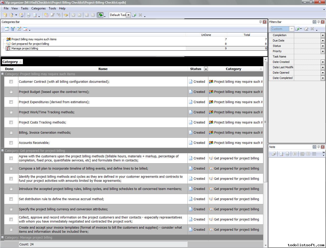 Project Billing Checklist will be helpful to all organizations which are contracted to execute some projects for their customers. Any work should be billed for and paid by consumers, so this checklist will help you to organize work accounting and billing for your projects.
