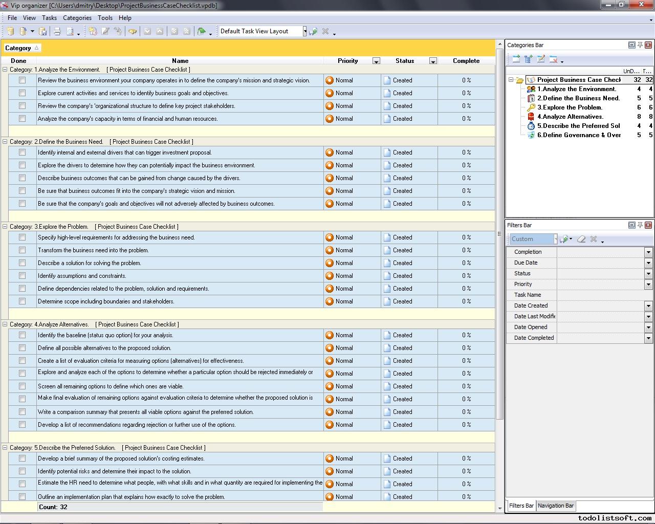 Business case serves as a formal document that explains why initiate a project, what problem to address by the project and what solution to use. The following Project Business Case Checklist explores key tasks to complete to develop this document
