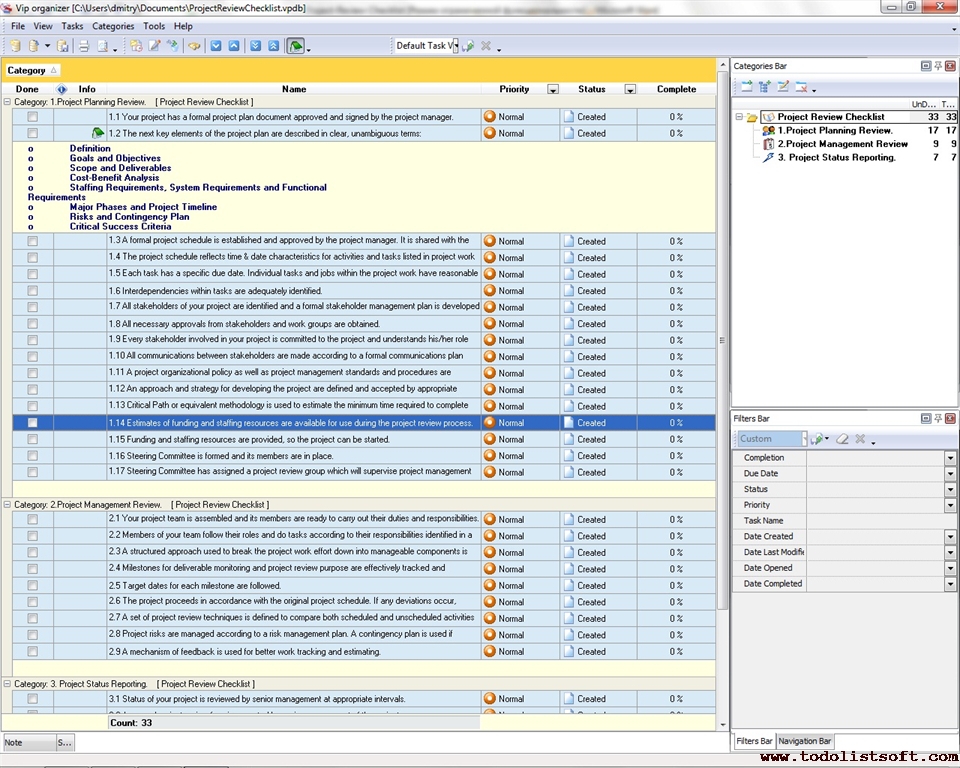 This IT Project Checklist is created to guide IT professionals who are beginners yet in managing their own projects. Using this checklist you will find out how you can collaborate with the customer representatives and how to continually make sure that you are working at what is expected by them to prevent their dissatisfaction.