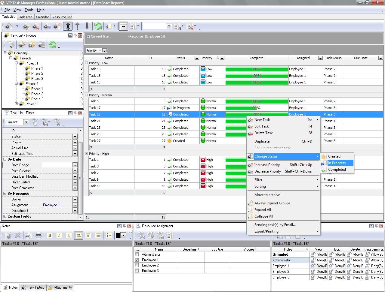 - Report tasks by changing their Statuses;