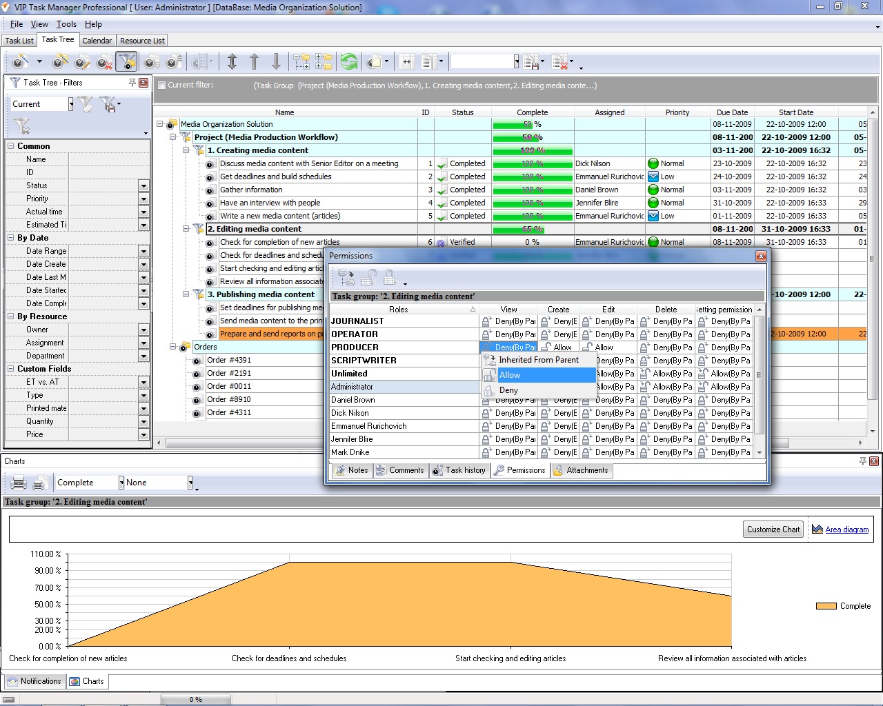 VIP Task Manager is a client-server product that stands for collaboration between people, so it enables the managers to set confidentiality in terms of particular tasks and projects. Let’s consider simple step-by-step instructions to adjust security settings using this product: