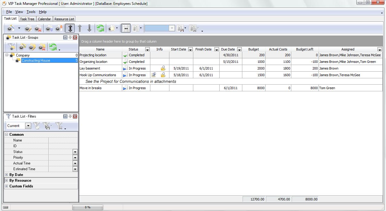 - Filter or group (on Task List) tasks by assigned employees;