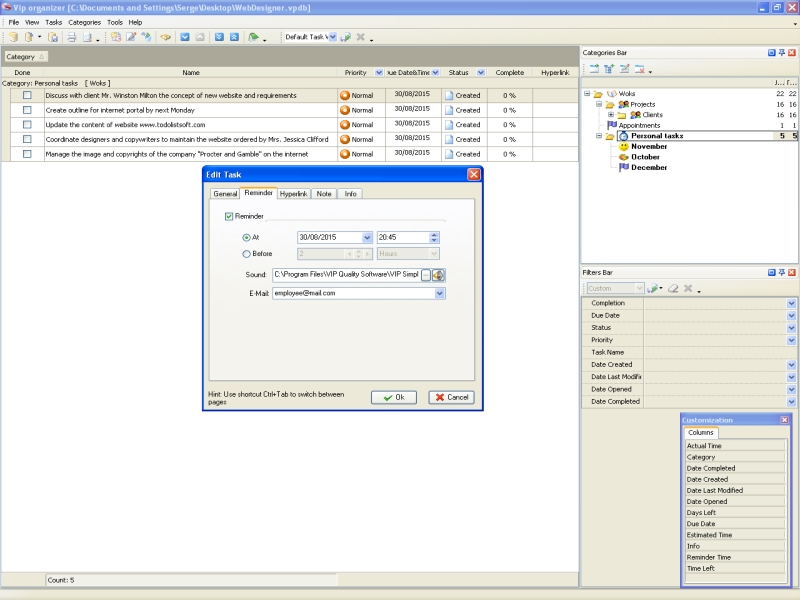- VIP Organizer. VIP Organizer is the best solution for freelance web designers who work alone and need to manage only their own tasks.
