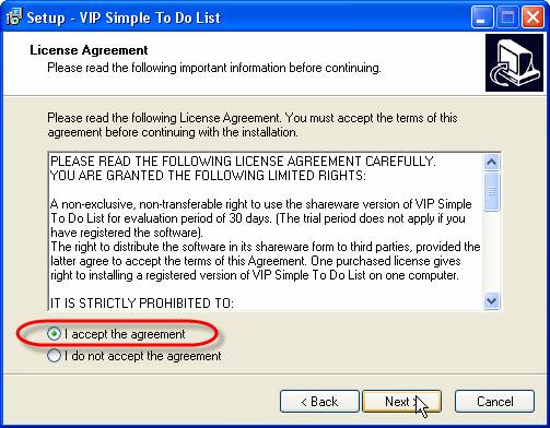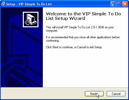 To install the program (let's take VIP Simple To Do List as example), please, follow the steps bellow: